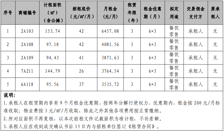 6.招租項(xiàng)目意向金:壹萬元(承租后轉(zhuǎn)為履約保證金);