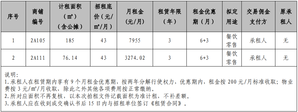 1.意向登記時間:即日起至招租公告報名截止日,逾期不予受理;